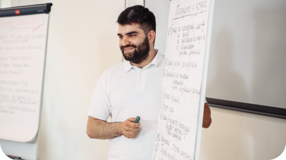 Для тренеров и внутренних экспертов компании. Для тех, кто проводит внутреннее и внешнее обучение и хочет качественнее работать с аудиторией тренингов, вебинаров, мастер-классов.
